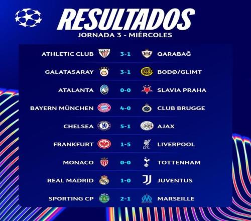 其中巴黎和拜仁将在下一轮比赛迎来正面对决,另一支全胜球队皇家马德里将客场挑战利物浦。