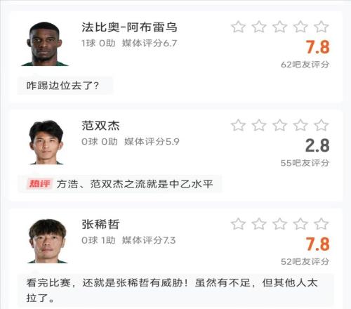 而替补出场的方昊和范双杰,他俩未能在有限的时间拿出应有的表现,尤其是方昊,在处理球方面不懂得变通,加上他球商经常不在线,所以也是有球迷将方昊和范双杰称之为卧龙凤雏的同时,还认为他俩就是中乙水平……