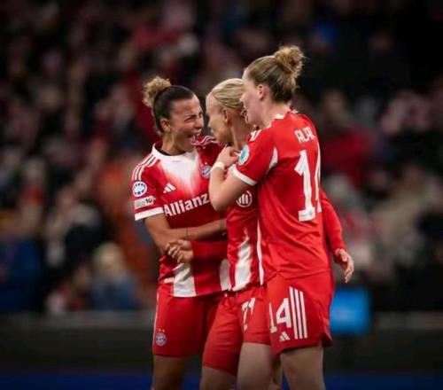 女足欧冠联赛阶段第3轮拜仁慕尼黑32逆转击败卫冕冠军阿森纳
