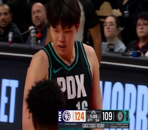 第四节仅仅5分钟,杨瀚森就贡献了4分1篮板1助攻,表现非常抢眼,这可是正儿八经打得太阳队的主力,当时可不是无悬念时间。后来,开拓者比分逐渐被拉开,比赛悬念失去之后,练兵时间,杨瀚森再次获得上场机会,一上来就有表现,先是在篮下封盖理查兹,然后再秀脚步,篮下一个转身,直接上空篮命中,紧接着,他连续两次助攻西索科吃饼,随后在被封盖后,反应迅速,拿到皮球继续打,完成2+1,罚球也进,太厉害了!