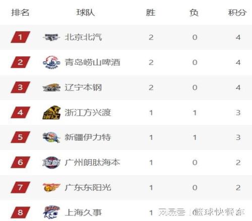 卫冕冠军广厦这一战虽然输给了辽宁队,不过,凭借着先赛一场的优势,广厦还是暂居积分榜第四的位置。新疆队则紧随其后,他们以1胜1负的战绩,排在积分榜第5的位置。积分榜第6名的则是广州队,上一轮比赛他们还是积分榜第3名,不过,辽宁、北京等队赢球后,广州队被挤出前四了。而广东队的排名则上升了,此前他们排在积分榜第10位,这一轮过后,他们的排名上升到积分榜第7。