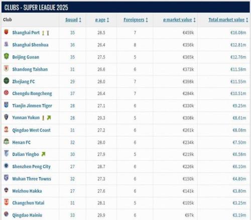 北京时间12月17日,转会市场网更新了中超球员身价,中超球队的身价更新也随之出炉。