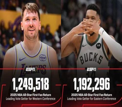 先从数据统计来看,目前公布的西部票王,来自于詹姆斯队友东契奇,以1249518票断档领跑所有人。而东部票王,则给到了字母哥,统计票数1192296票。