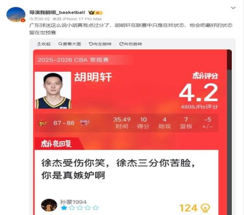 末节+加时怒砍2分!胡明轩11中3遭广东球迷批判媒体人冷嘲热讽