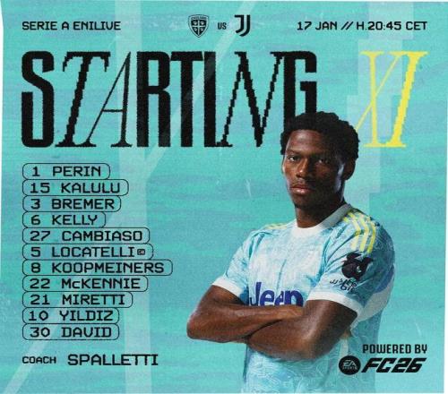 尤文客战卡利亚里:伊尔迪兹首发,戴维、麦肯尼出战