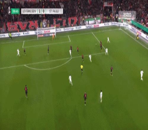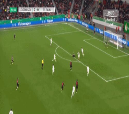 第31分钟,泰里耶凌空抽射,皮球直挂死角,勒沃库森1-0圣保利