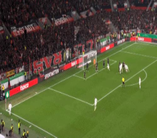 第40分钟,卡尔斯门前抢点,离谱将球踢飞