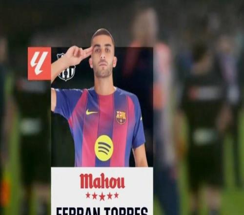 梅开二度,费兰托雷斯当选巴萨vs赫塔费全场最佳