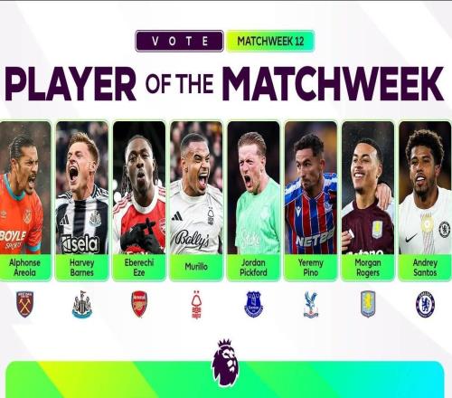 英超第12轮最佳球员候选:埃泽、安德雷桑托斯、穆里略在列